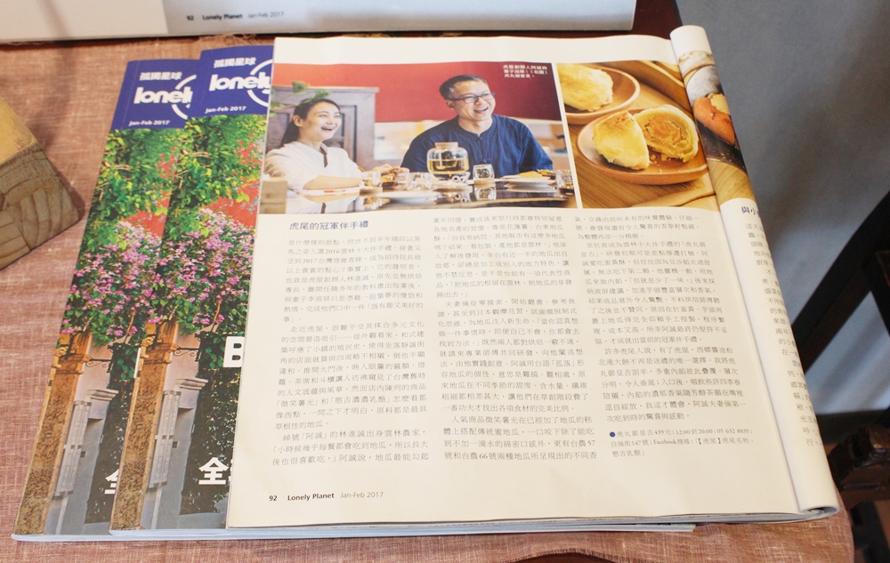 一旁牆面的壁櫥播放著阿誠老闆受訪時的影片,還有上《孤寂星球》 (lonely planet)的雜誌報導,對虎屋的故事有興趣的可以觀看和翻閱。