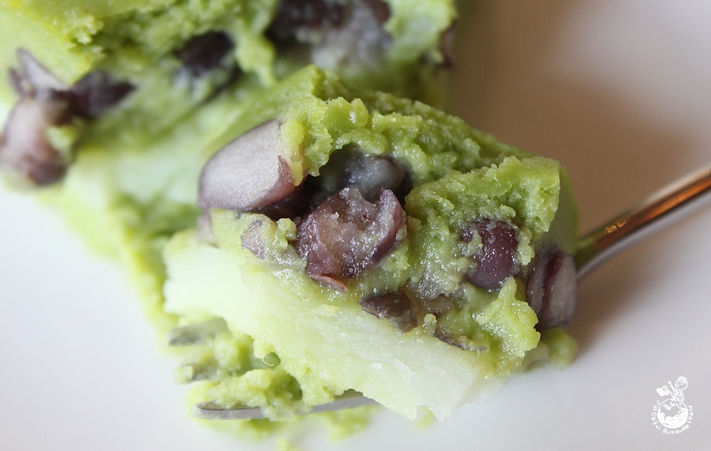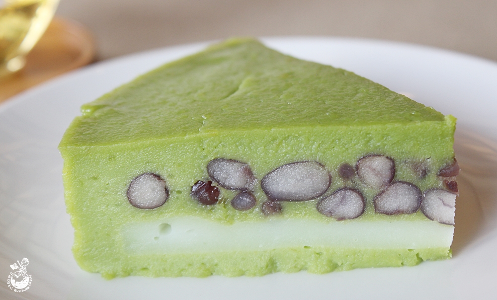 抹茶、紅豆和手工麻糬恰到好處的融合在一起,沒有同床異夢味道不搭或是誰被誰搶盡風頭的問題,各個味道很平均的在口腔展現出來,抹茶味很強烈,紅豆的甜味也很突出,而麻糬十分黏密和蛋糕很合。