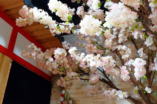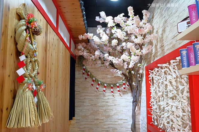 如果你以為它不過就像是小型神社那就就有點太小看它了,裡面還有一座超美的櫻花樹造景呦!向來喜歡日本元素的我,看到這幕都快要尖叫了,哈哈!是說這間手搖未免也打造得太美了吧!