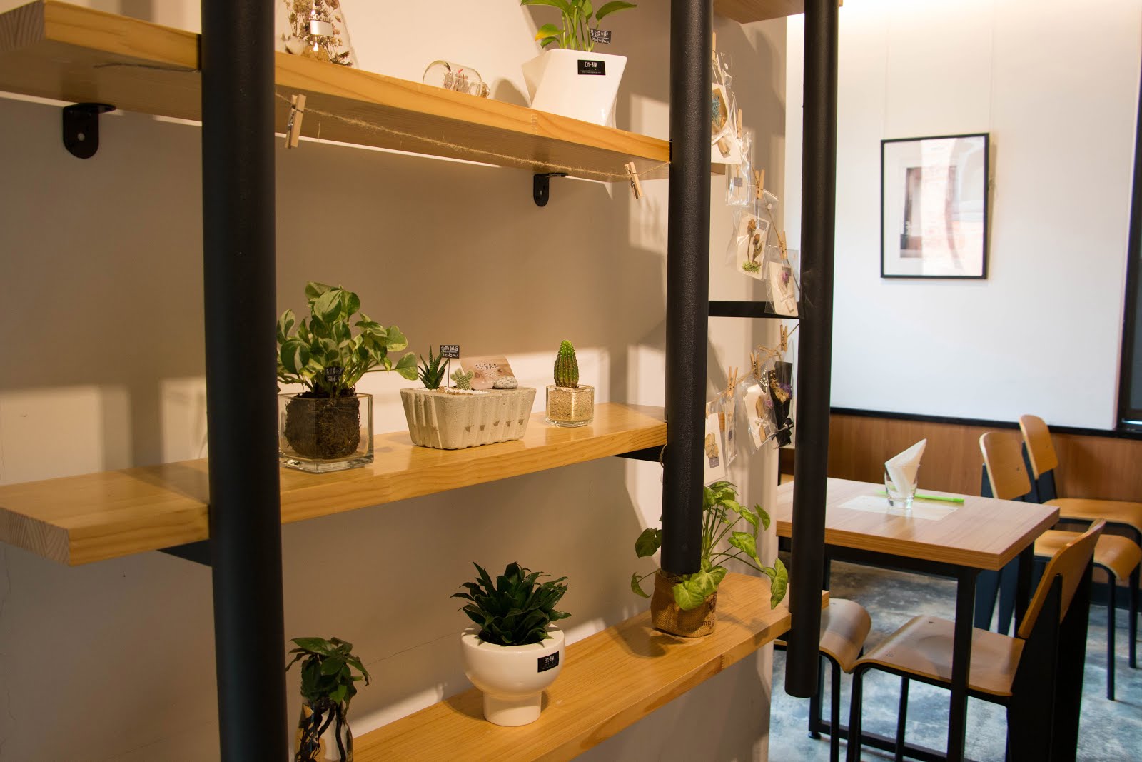 一進門就看見整面綠白拼裝的磁磚牆,除了屋外透進的綠意,店內也有一面小小植物牆,連點單的筆都是小草造型的。生氣盎然毫不造作的裝潢風格,在進門的第一時間就非常喜歡。