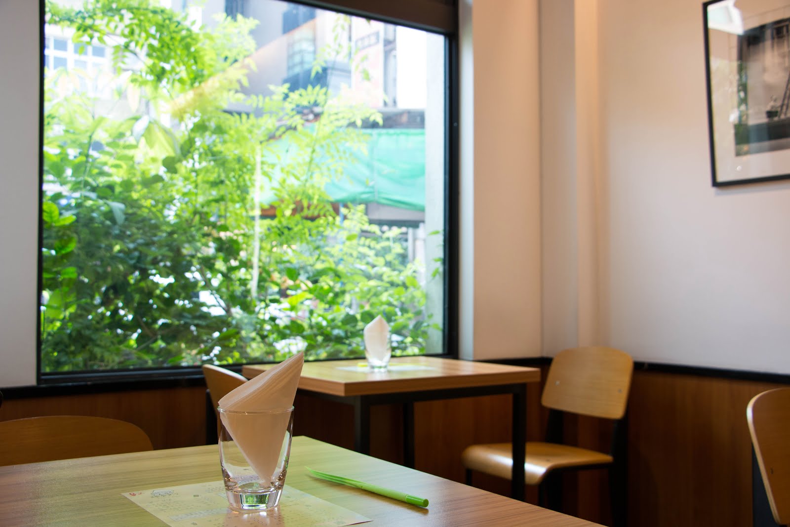 除了插座相當優秀外,我個人也非常喜歡店內的窗邊座位,南台灣的熱情豔陽將外牆的綠意渲染進室內,靜靜看著都覺得好舒服,而因為當天我們沒有訂位,所以店員將我們安排在吧檯。