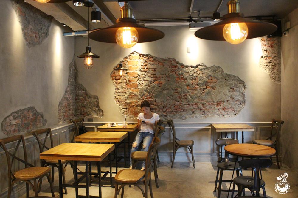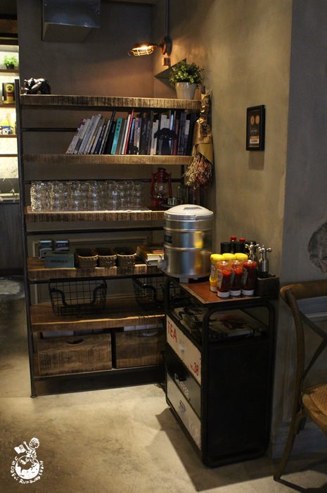 空間走酒吧的氛圍,令人有種在酒館吃早午餐的感覺,若在此酗酒一點也不違和(←會被趕出去吧)個人很喜歡紅磚外露的牆面,營造出斑駁粗曠的工業風格。牧熊小館的生意甚好,我是等到用餐尖峰時間過了、剛好有個空檔客人都走了才趕緊拍照,結果拍完照沒多就又有兩組客人來訪囉!