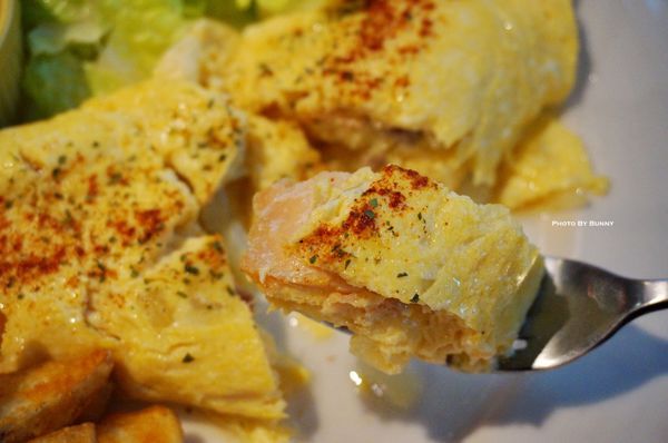 接著包著不少燻鮭魚的蛋捲