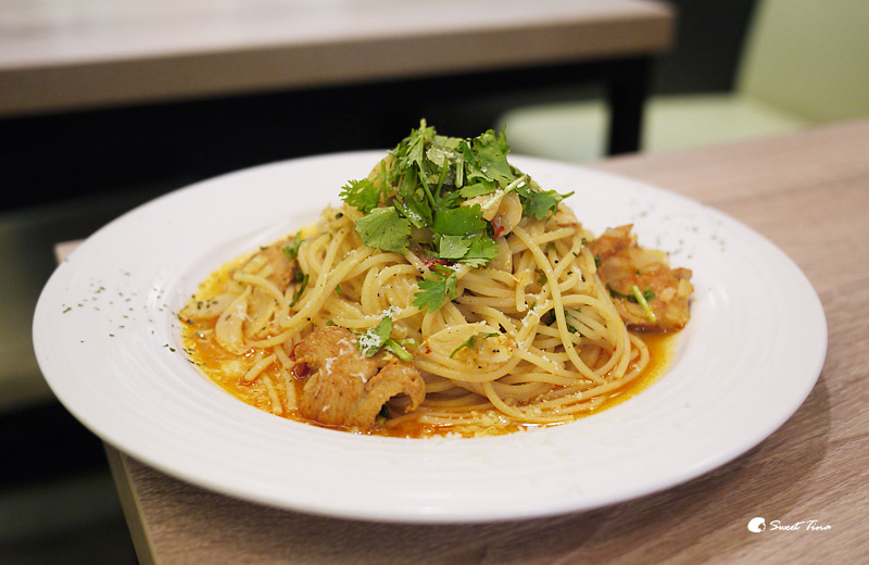 泰式酸辣嫰雞香菜麵 - 將泰式酸辣的風味融入於義大利麵中,還是第一次品嚐呢,夏天吃起來格外開胃可口,辣度也可以調整,喜歡吃酸辣口感的朋友絕對要來品嚐看看。