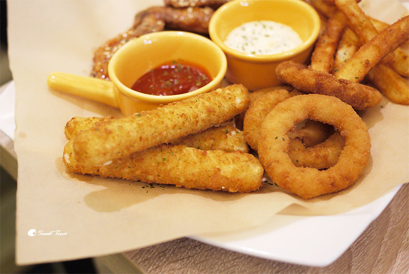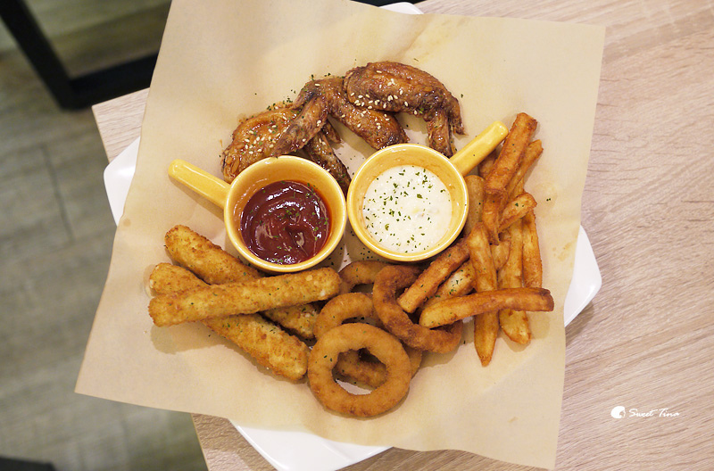 炸物派對 - 由薯條、洋蔥圈、起司條、辣味雞翅組合,挺適合三五好友聚會的點心組合,炸物的處理也很不錯,吃起來不會感到油膩呢。
