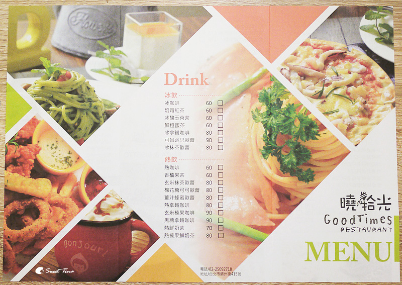 曉拾光餐點內容有義大利麵、燉飯、薄片PIZZA、炸物、甜點,飲品,另外也可以+77元搭配成套餐。