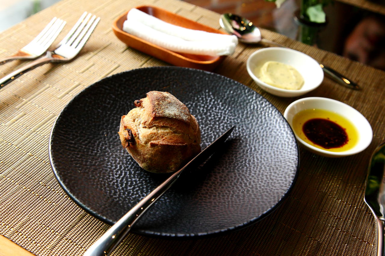 主廚自製的歐麵包,附上橄欖油、松露奶油,咬咬都沒用到單吃這歐包就好好吃耶!外層酥脆歐包,裡頭濕潤有嚼勁,還有桂圓果肉的果香氣呢