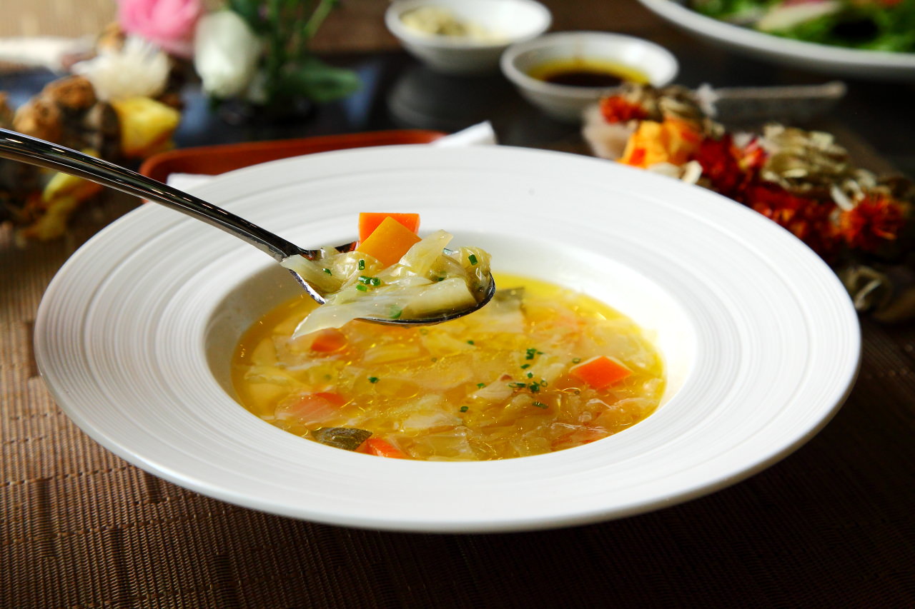 蔬菜細切成小丁狀,洋蔥、高麗菜都已熬煮嫩軟,蔬菜一入口便在口中化開,湯底充滿蔬菜的甘甜精華