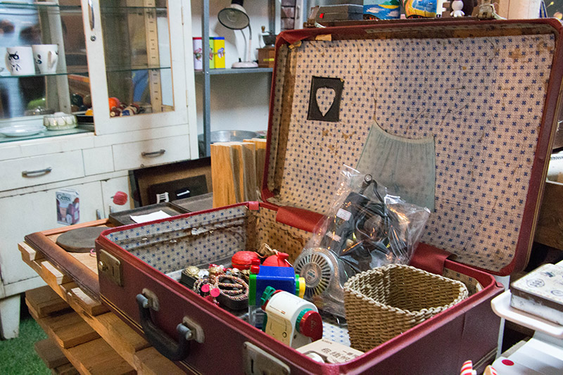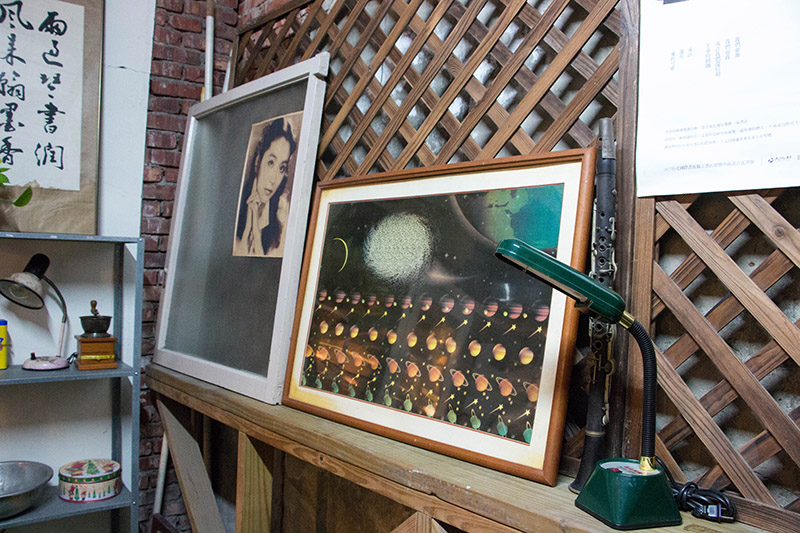而房間正後方的另一個小室裡擺設著各式模型古物,有塑膠古玩、老家具、早期的電影海報等