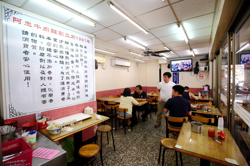 阿忠牛肉麵位在新莊區的民安西路上,用餐區域有分為室內室外區