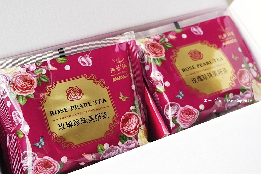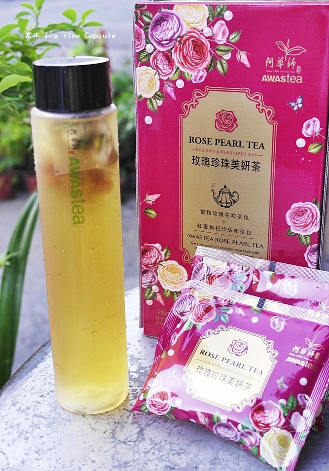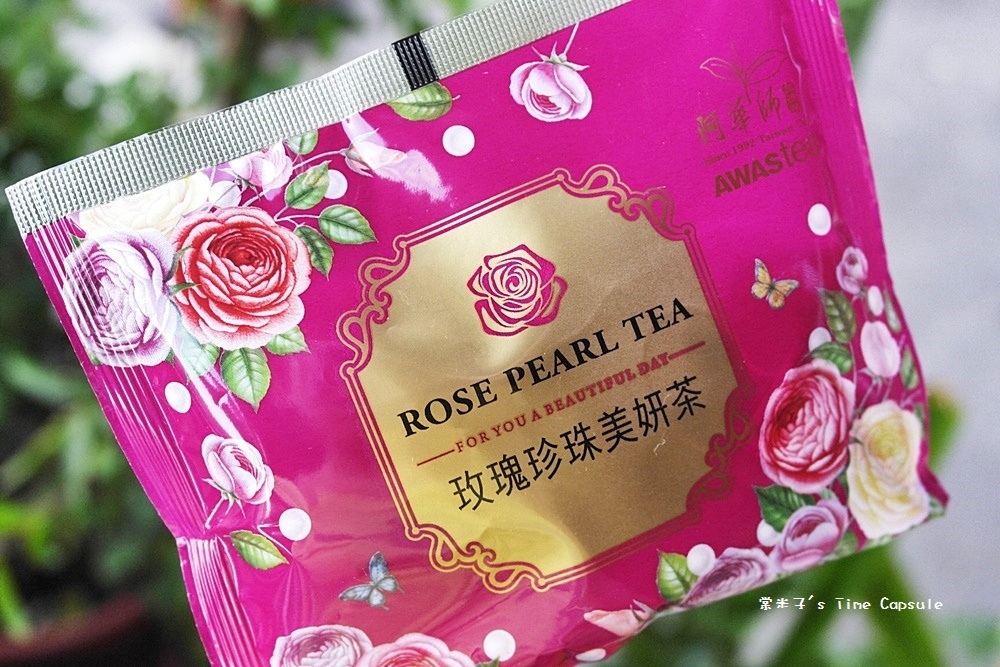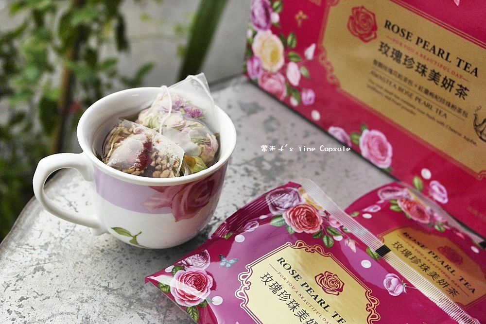 "玫瑰珍珠美顏茶"外袋是美美的玫瑰花圖樣,