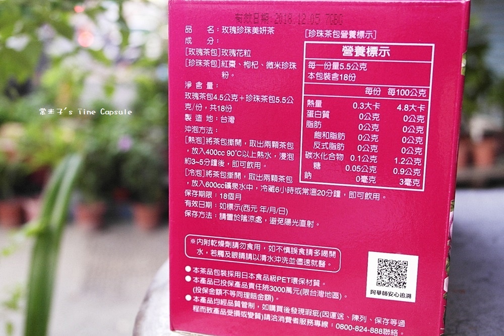 背面將這款"玫瑰珍珠美顏茶"的成份介紹的很清楚,