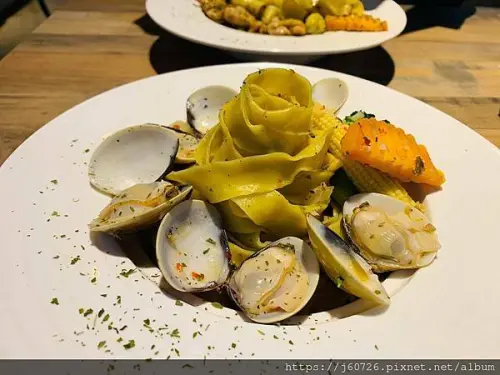 細扁麵一般義大利麵店比較少點的到,所以每次一看到就會毫不猶豫阿!這種麵的麵粉味比較少,搭配清炒的海鮮鮮甜剛剛好!