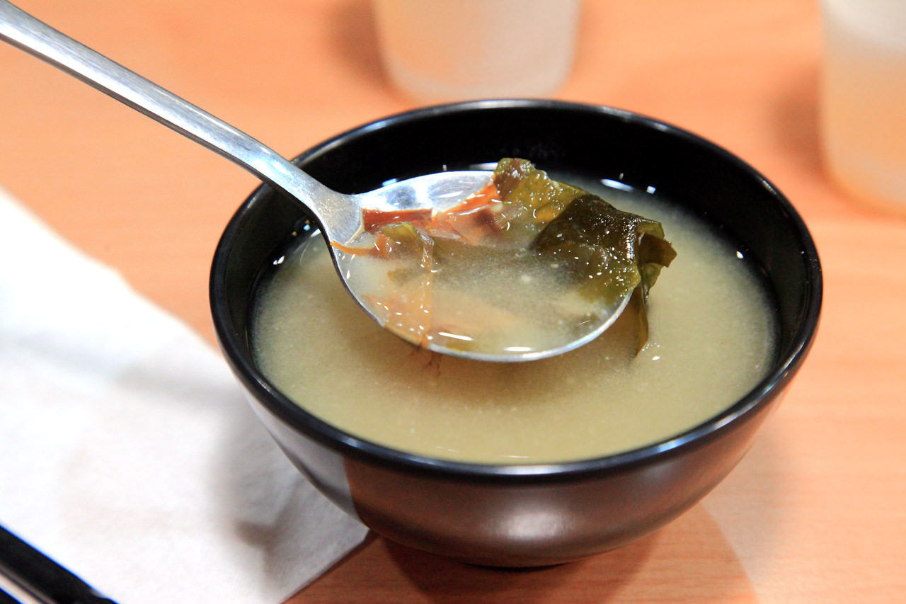 雙醬咖哩提供的是紅茶跟味增湯,都可以無限暢飲,味增湯的味道有點清淡,撈的到海帶跟豆腐塊,紅茶算好喝的