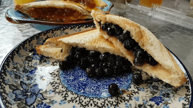 罪惡的焦糖白玉直接淋在抹著芒果醬的吐司上