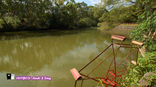 湖畔邊發現一座人力小水車,利用踩踏的帶動,可將湖水舀出,農業社會為灌溉用,現今雖為社區營造所建構,但看來已經沒有維護,