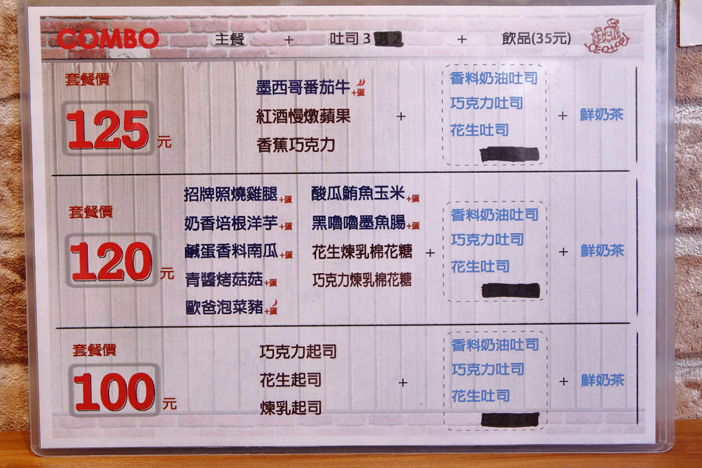 菜單上有單點的品項也有組合好的套餐,提供客人的多樣選擇