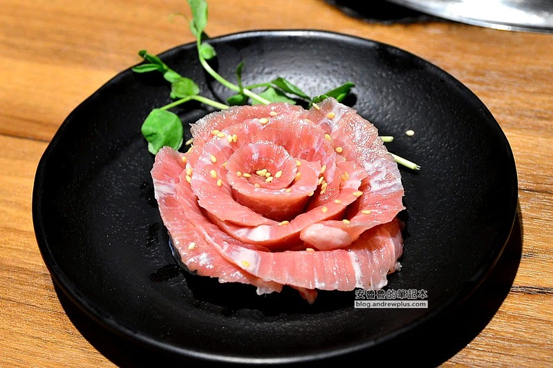 一開始就來個肉片拚盤上桌,有安格斯極盛黑牛、頂級無骨牛小排、頂級安格斯牛五花、霜降雪花牛,而且擺盤超漂亮的啦!