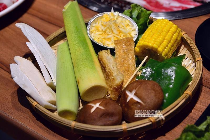 肉肉吃多了還是要來吃點蔬菜均衡一下!有筊白筍、杏鮑菇切片、玉米、青椒等等