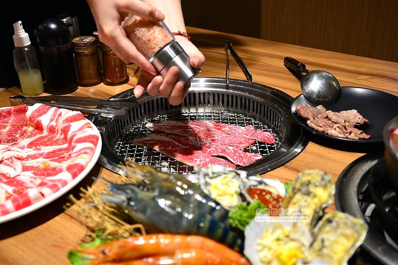 首先從無骨牛小排開始暖身,肉片放下去之後再撒點玫瑰鹽調味