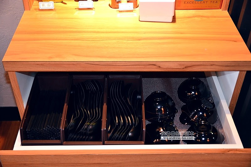 調味料茶包的下方就是湯匙和小碗擺放的櫃子,稍微拉開一下就可以輕鬆取得