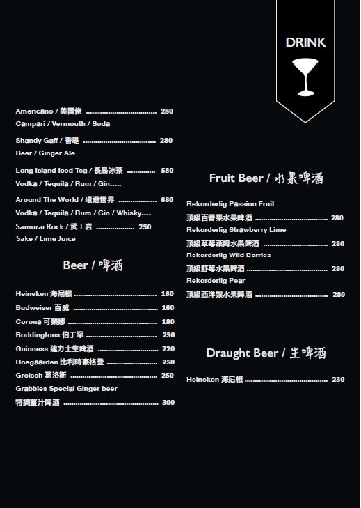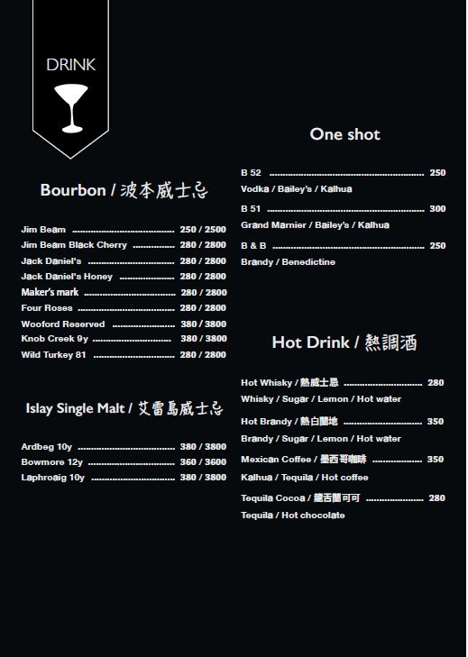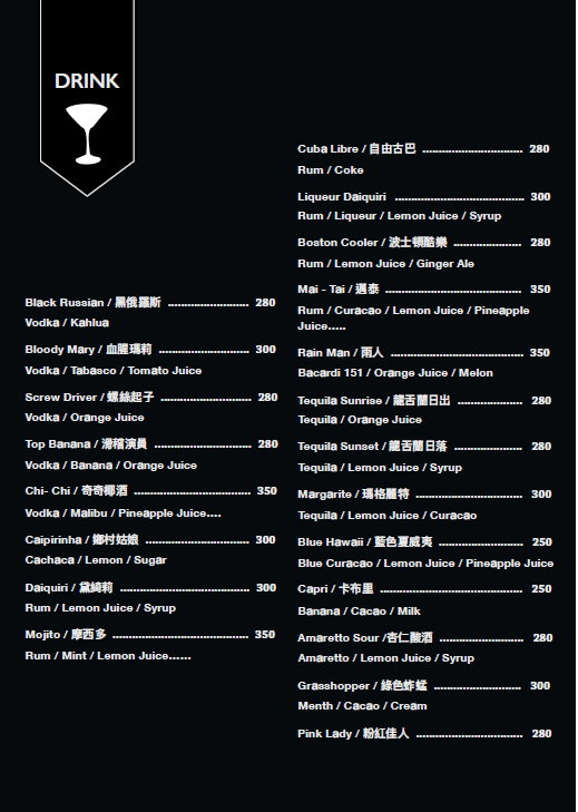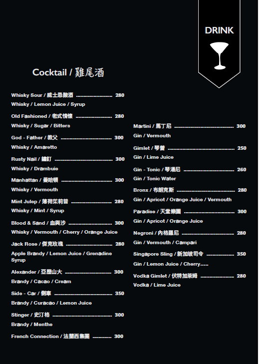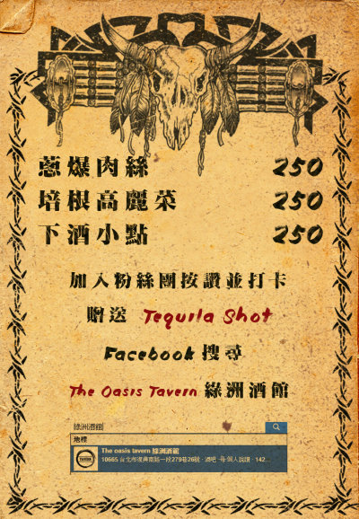 ▼以下則是「THE OASIS TAVERN 綠洲酒館」的MENU與酒單,提供給大家參考參考!
