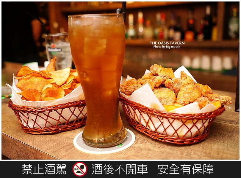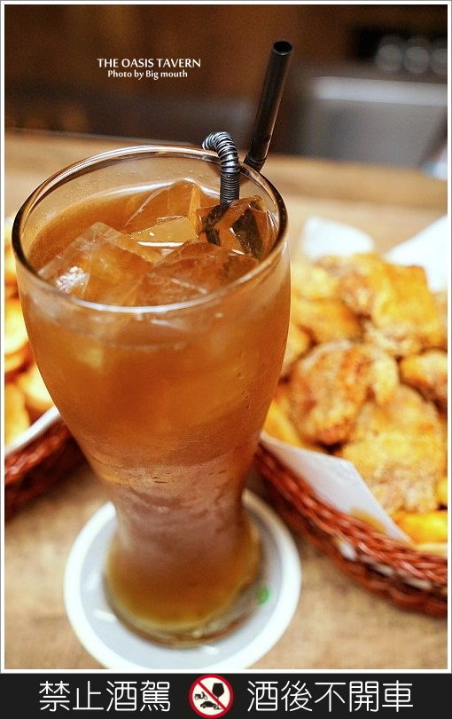▼嘿嘿!重點來囉~來這裡就是要大口喝酒、大口吃肉才過癮啊!我們點了長島冰茶(580元)、竹籃炸雞(350元)、手工洋芋片(200元),準備來好好享受這個美好的夜晚!