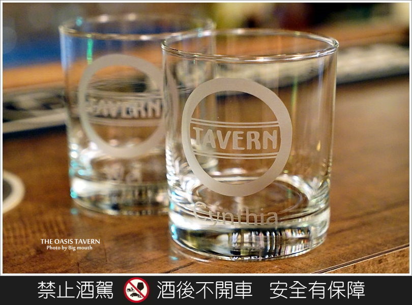 ▼「THE OASIS TAVERN 綠洲酒館」還會幫VIP、熟客或是老朋友製作專屬酒杯,上頭除了印製店名之外,還有客人的名字,讓每個拿到杯子的客人都有種賓至如歸、被重視的尊榮感,可說是相當貼心的一點啊!