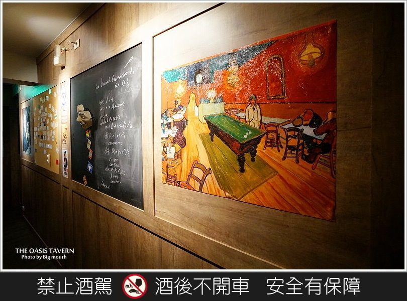 「THE OASIS TAVERN 綠洲酒館」的環境舒適又不過於吵雜,只有單純的聊天喝酒、聽聽音樂、欣賞畫作,沒有燈紅酒綠、讓人提心吊膽的氛圍,有些朋友來這裡尋找靈感,有些朋友來這裡放鬆歇息,有些朋友來這裡敘舊小聊,這裡不僅僅是下班後小酌的好地方,也是大家出門在外可以有個寄託、放鬆心情或是增加靈感的好地方!推薦給大家,有興趣的朋友不妨可以來點小酒、小菜,就能自在的享受一個美好的夜晚!(未滿十八歲請勿飲酒)