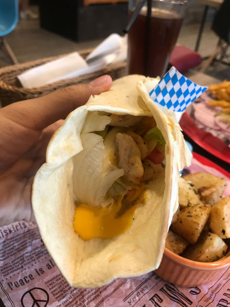 烤雞捲捲食的分量很足夠呢!對一個女生來講,吃完會有飽足感悠,但如果是個男生吃的話可能會不太夠XD