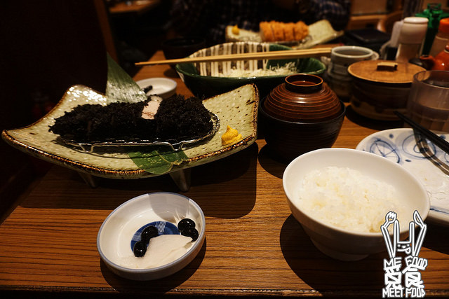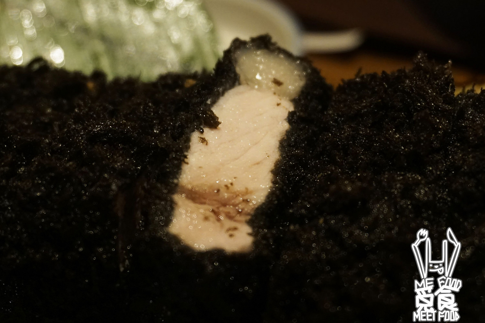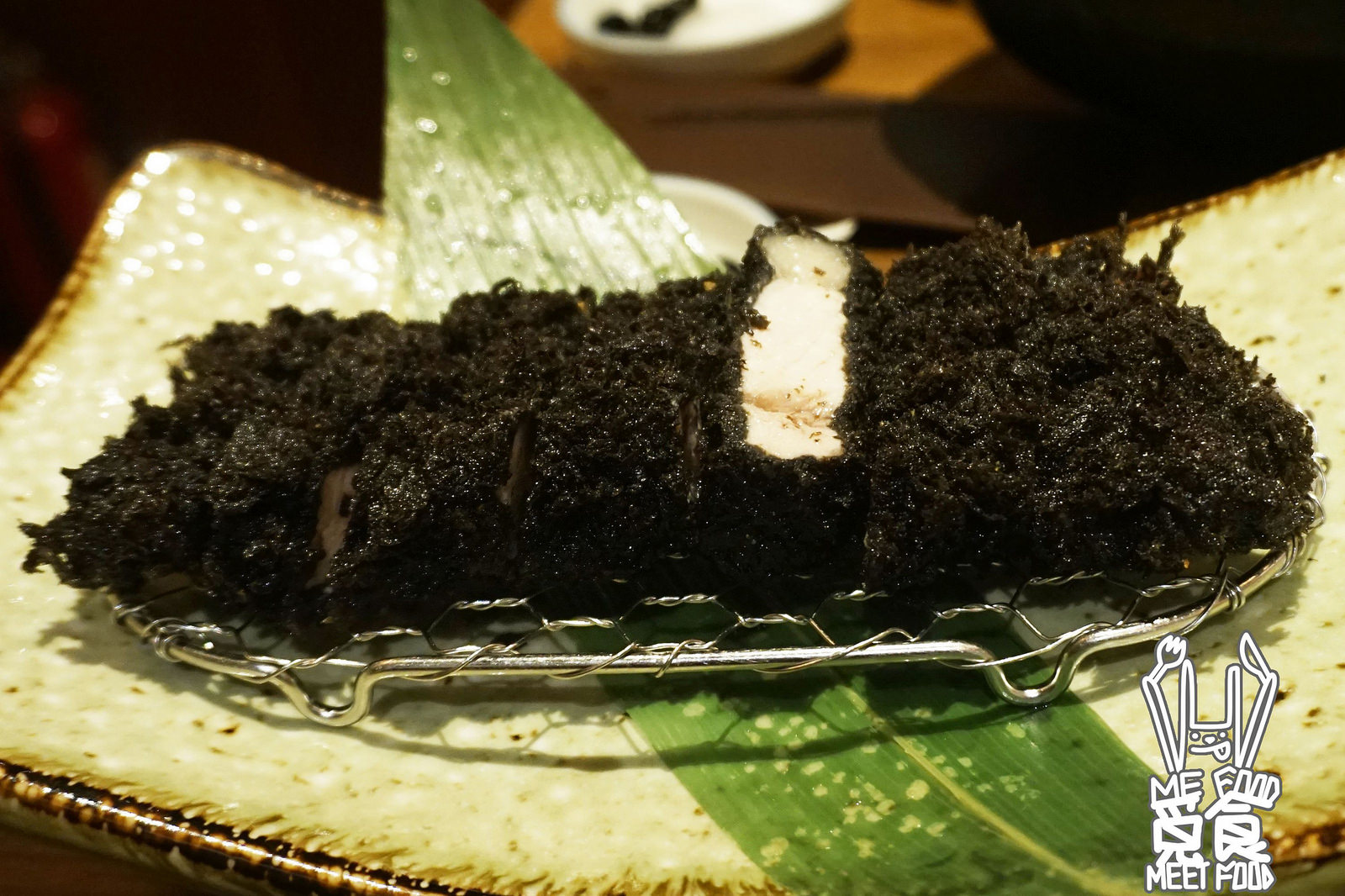 全黑的豬排外皮很特別 但也很讓人懷疑這樣真的會好吃嗎