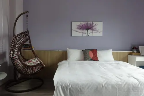 房間內的吊籃藤椅坐起來非常有包覆感很舒服