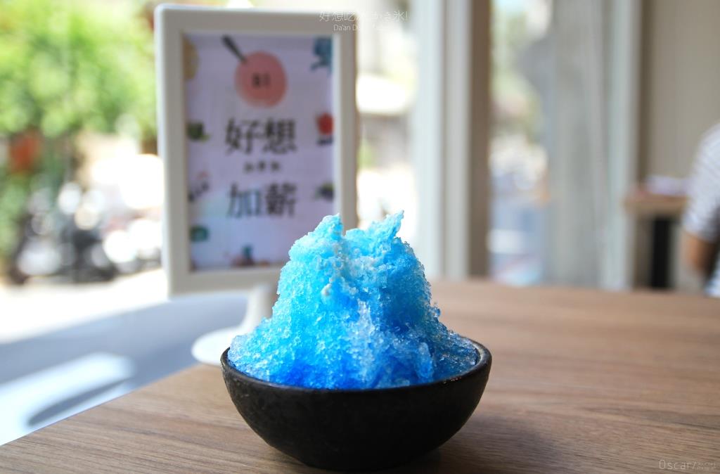 藍色調的糖漿 將雪白的刨冰染成沁涼的淡藍