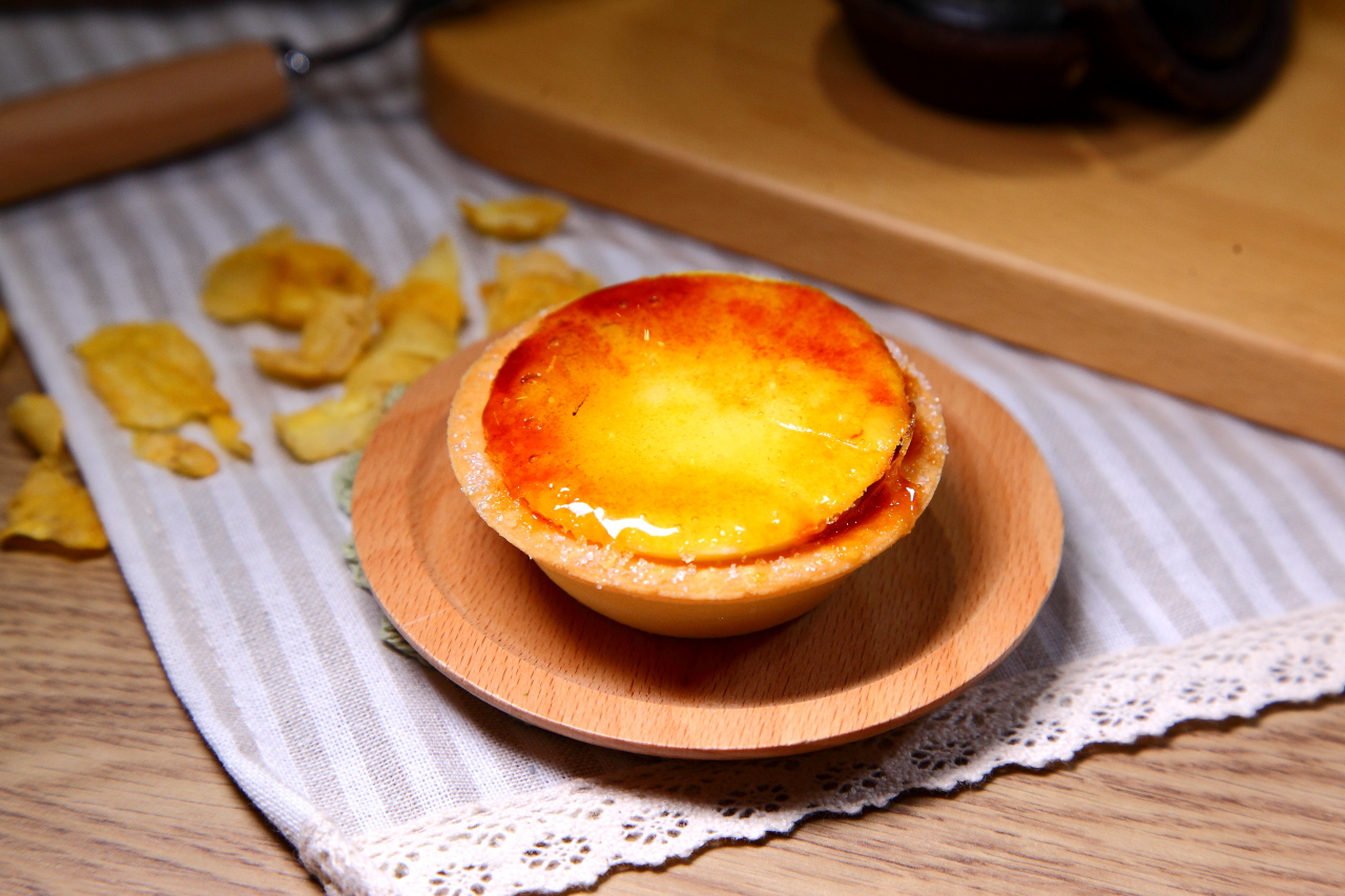 融合法國起士與義大利馬斯卡彭起士,加入鮮奶、雞蛋及馬達加斯加香草莢,在蒸烤爐中蒸烤放進急速冷凍冰鎮,享用前在起士塔上撒上些許糖炙烤成焦糖,濃醇多層次的起士餡加上薄脆的焦糖及酥脆的塔皮,口感絕妙多變化!