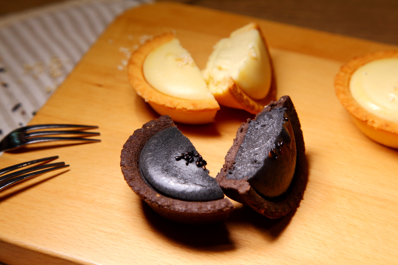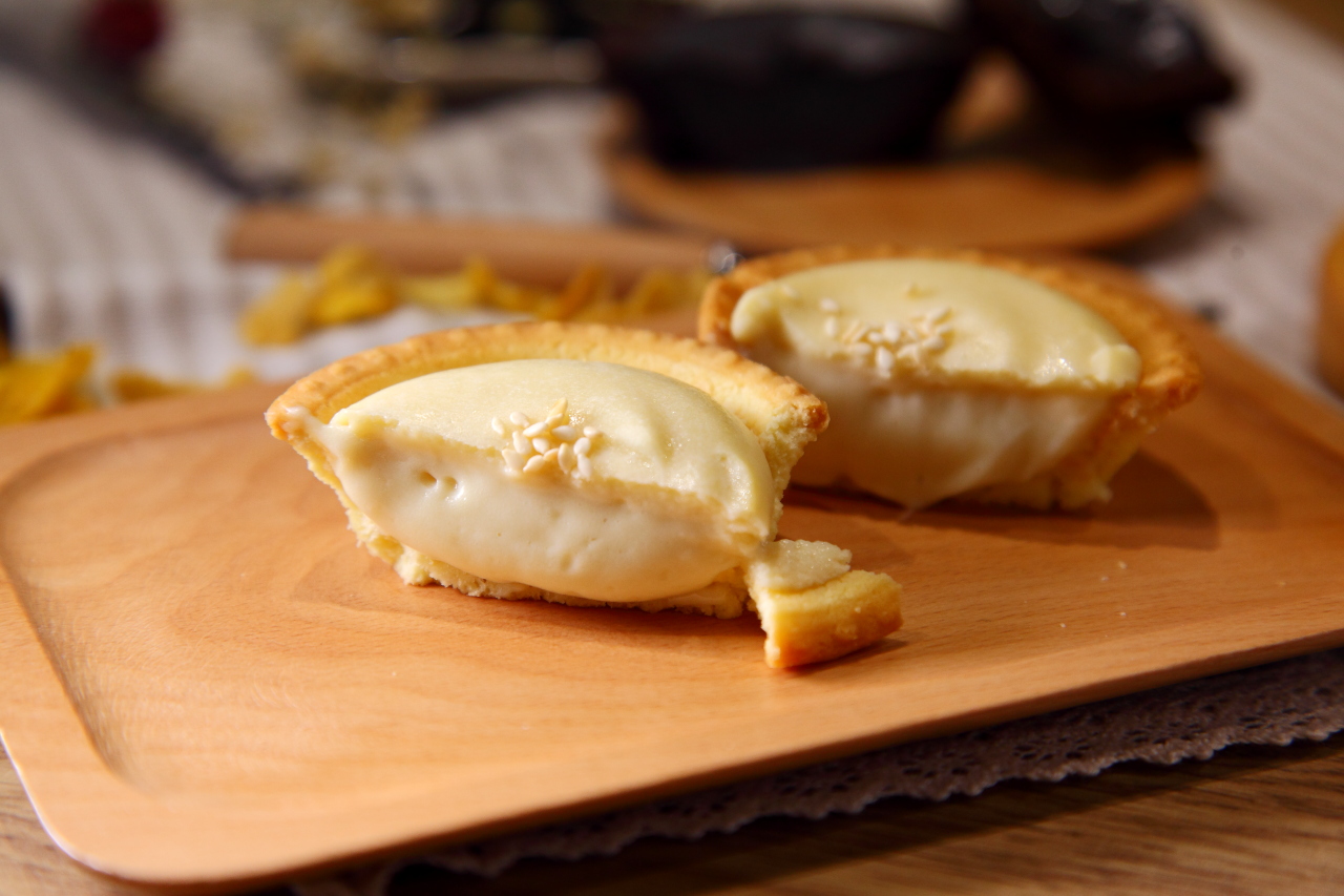 白胡麻/黑胡麻起士塔的風味各異,黑胡麻起士塔走的是濃醇紮實風味入餡.黑胡麻口味相當的香醇濃厚,剛烤好時熱呼呼的起士呈現半融狀態,搭配酥脆充滿奶香的塔皮,百吃不厭!白胡麻起士塔則是走高雅風味的清爽風,入口滑順,胡麻香氣帶著柔潤的起士香,每一口都是滿滿的幸福!