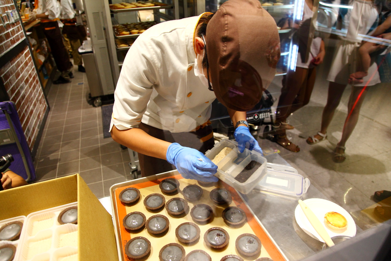 大江安普蕾修sweets開放式的烘焙廚房,所有起士塔都是當場現做,現烤現做也是安普蕾修sweets的獨特魅力之一