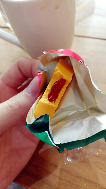 剛好碰到老闆的兒子回來了,順便請我們吃日本的橘子口味巧克力~