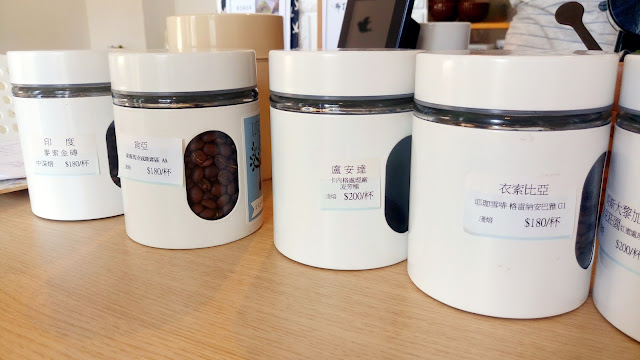 今天喝的白咖啡就是從下面這一排的咖啡豆來的,綜合咖啡豆
