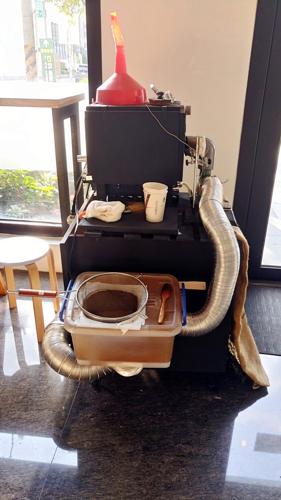 ▼看到這個外型特別的機器,原來是經過老闆多次自己改版的特製烘豆機!
