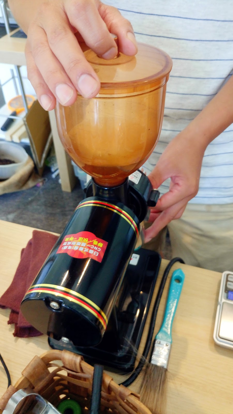 可以在櫃台看老闆沖泡咖啡,先秤重咖啡豆後放入機器磨成咖啡粉