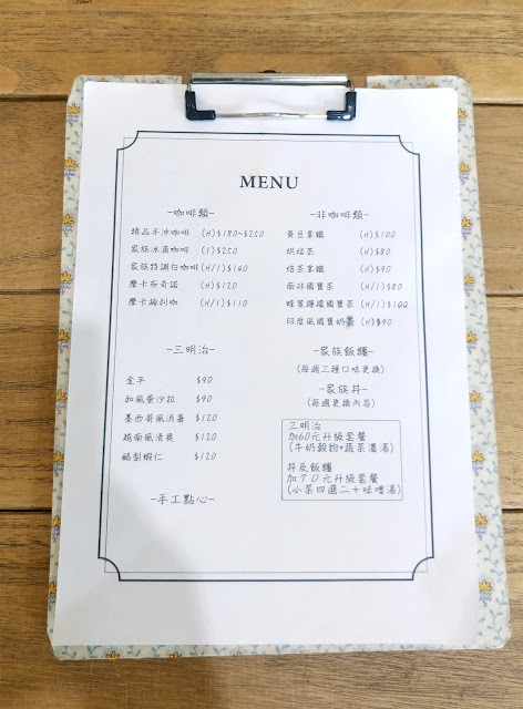▼菜單很簡單,就只有一張,因為家族咖啡不是複合式咖啡廳,所以不會有很多種類的餐點