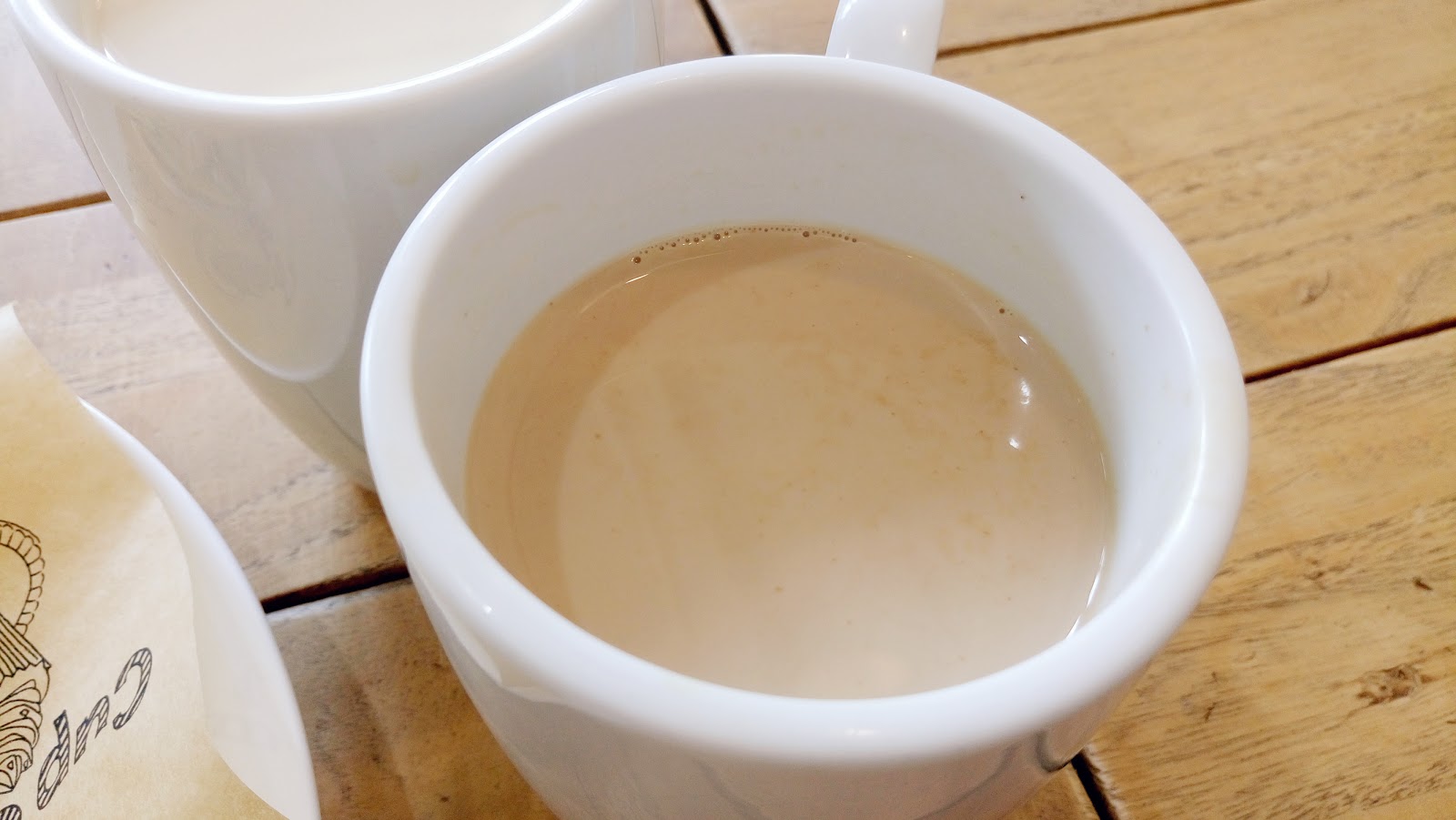 感覺比我自己平常加的牛奶還多啊XD,牛奶味比較重,咖啡味淡很多