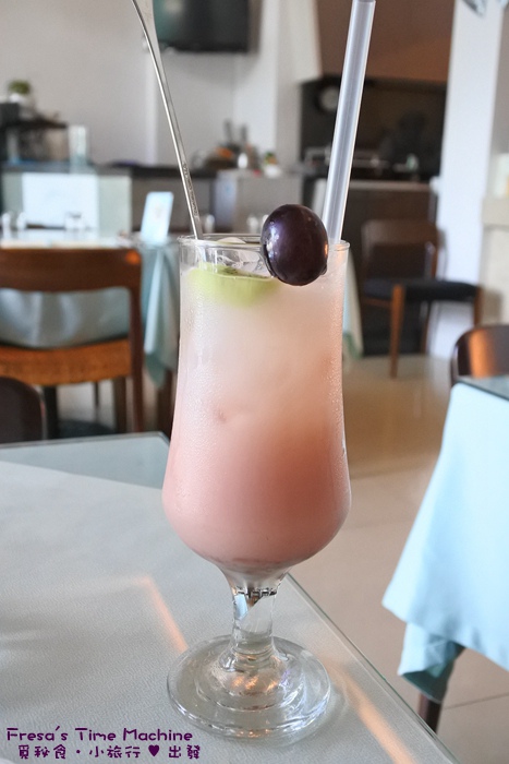 杯上再點綴了葡萄與奇異果.輕柔的很~