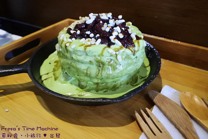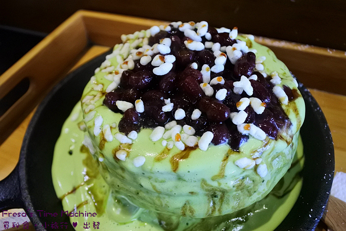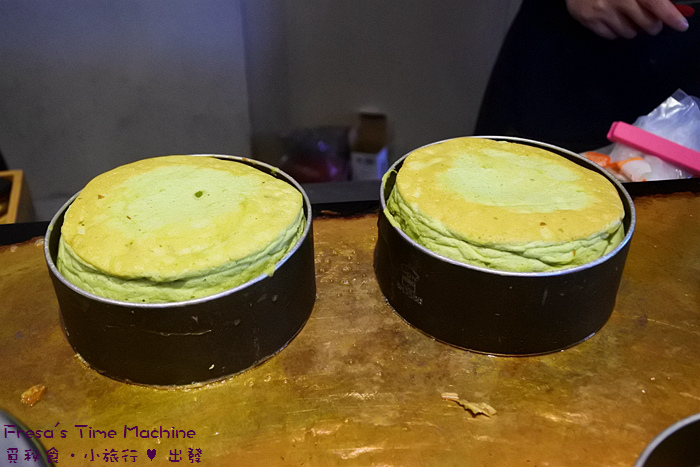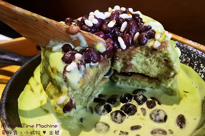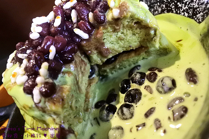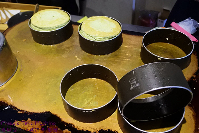 看著澎塞塞抹茶舒芙蕾厚鬆餅逐漸完成之樣.