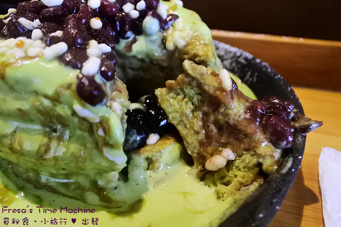 淋上超多香濃抹茶醬汁.還溢流了整個鐵鍋中...
