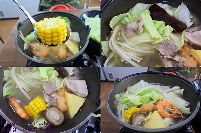像是高麗菜、黑木耳、芋頭、玉米、金針菇、香菇....等配料.