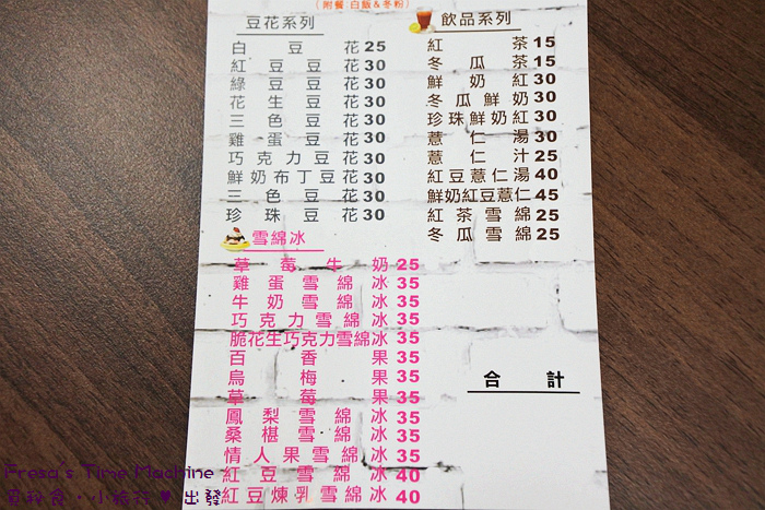 下張半部份則是豆花、雪綿冰和飲品.