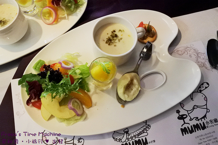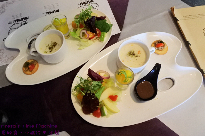 首先上桌是套餐內的開胃小點、湯和沙拉.