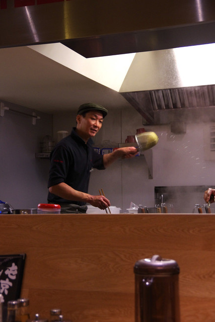半開放式的廚房,可以很清楚的看到日本師傅煮麵還有甩麵的動作