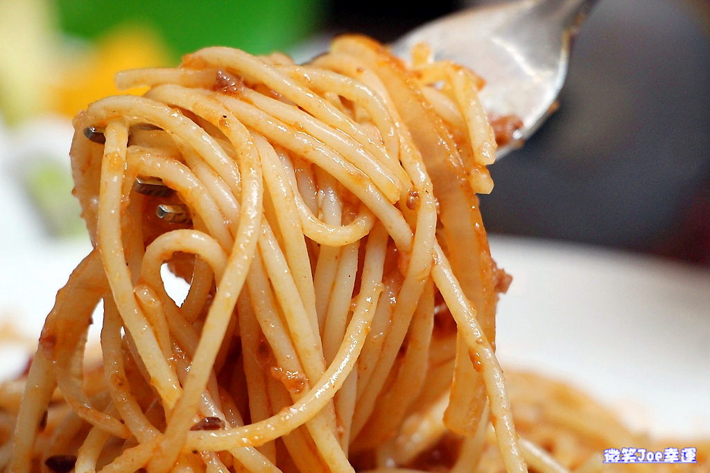 波隆納肉醬裡頭的茄汁不會有過多的酸氣,與肉汁混合得恰到好處,肉醬則是牛豬絞肉混合,上頭還有起司絲一同搭配,層次感更加豐富。